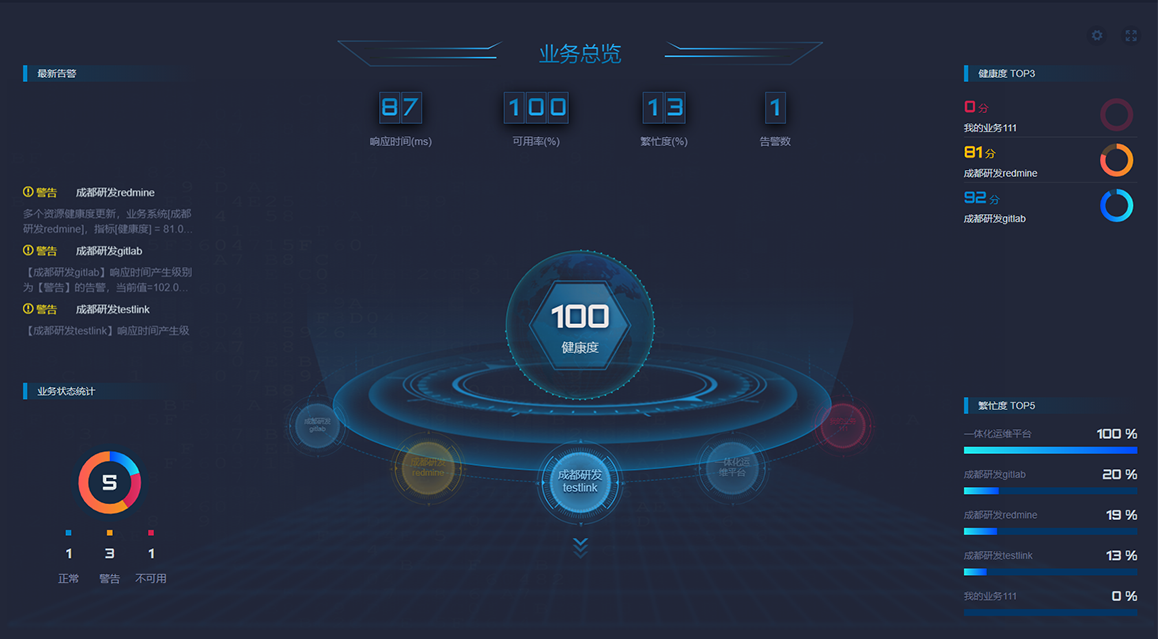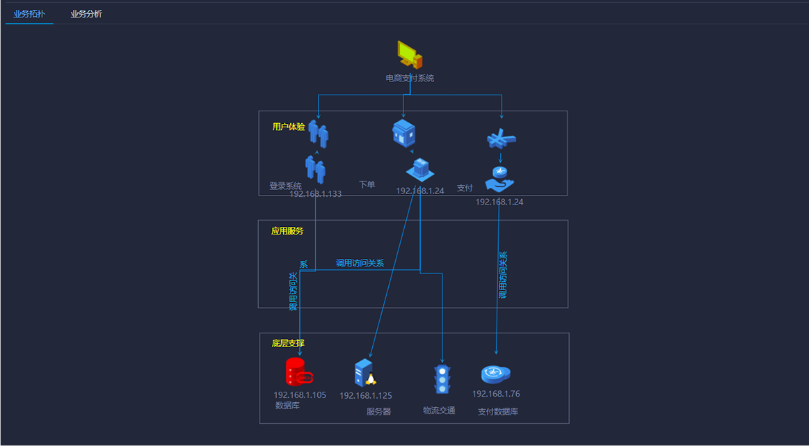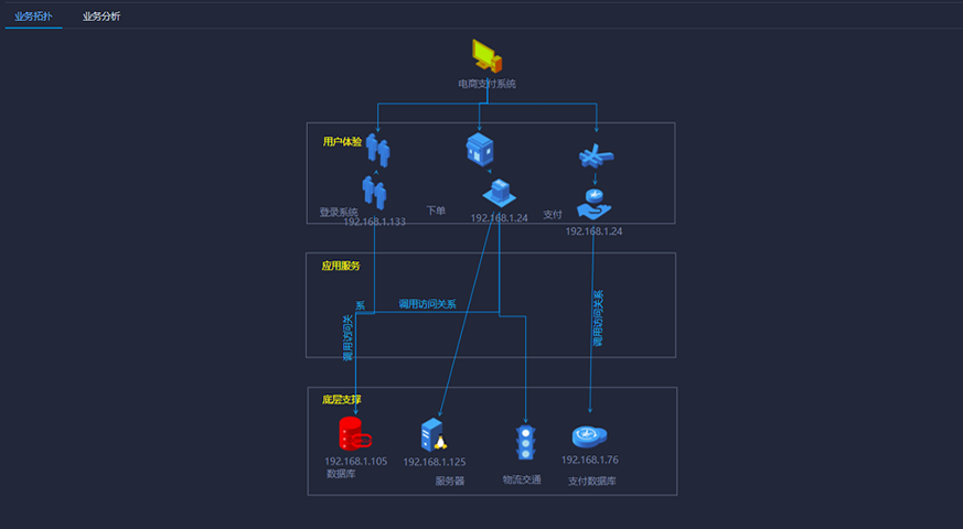 背景:由于業(yè)務(wù)系統(tǒng)底層支撐的各個(gè)設(shè)備分離,當(dāng)業(yè)務(wù)系統(tǒng)出現(xiàn)故障(健康度、響應(yīng)時(shí)間、存儲(chǔ)容量、數(shù)據(jù)庫容量、CPU容量、繁忙度、成功率等)時(shí),不易對(duì)故障進(jìn)行定位和診斷。
