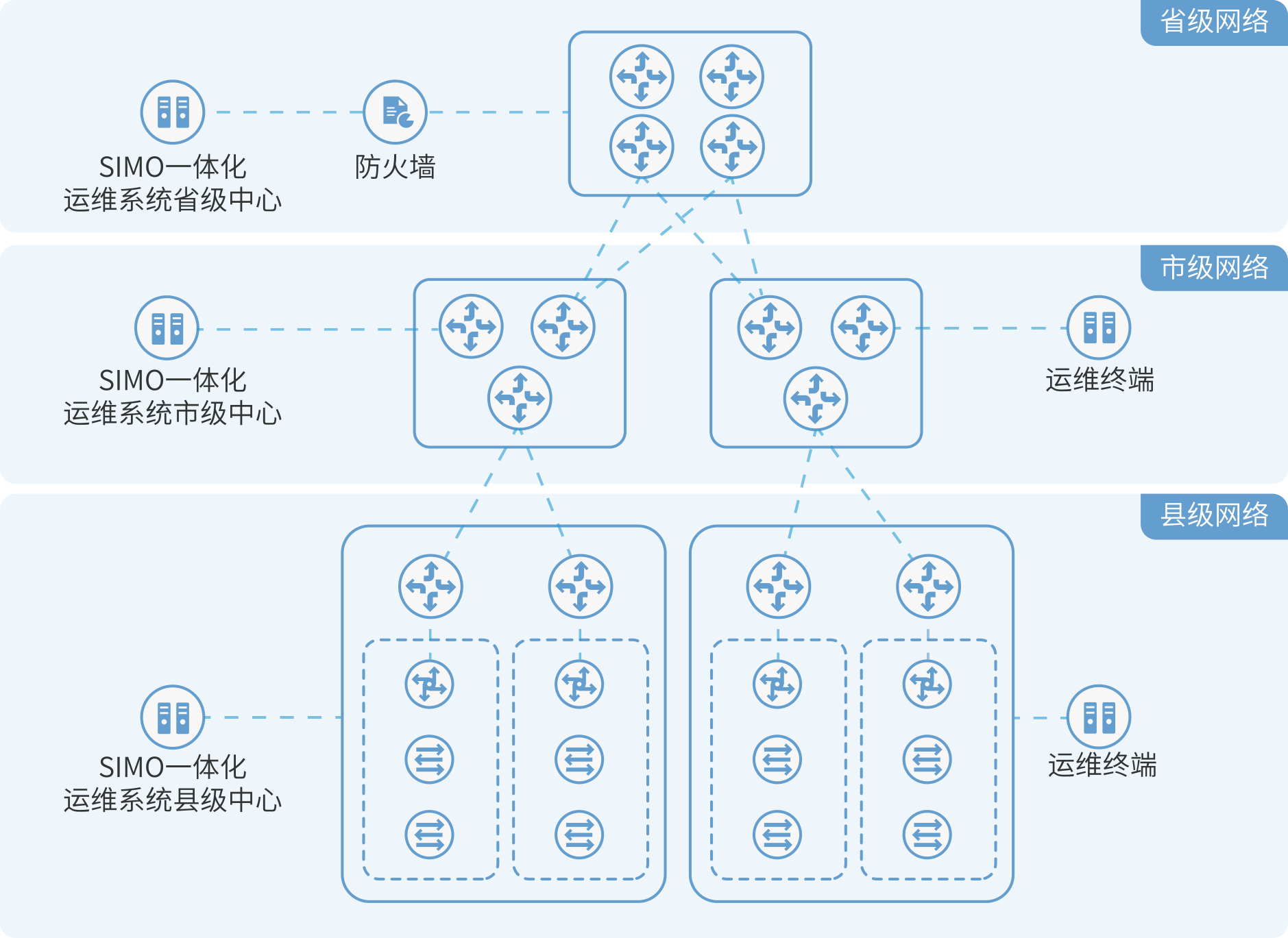 背景:對(duì)于信息系統(tǒng)多級(jí)管理的用戶而言,由于信息系統(tǒng)分布在不同的區(qū)域或下級(jí)單位,其維護(hù)管理也由下級(jí)單位負(fù)責(zé)。分級(jí)管理方案能夠幫助上級(jí)單位掌握下級(jí)單位的業(yè)務(wù)開展?fàn)顩r,滿足用戶實(shí)際運(yùn)維需求。