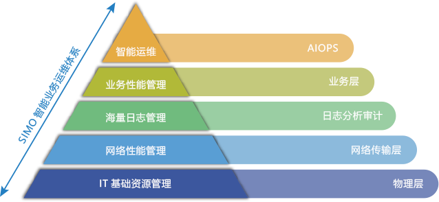 SIMO全棧功能??橐允滌夢(mèng)謚跡閱?榛⒎窕杓評(píng)砟睿渲饕?榘?個(gè)中心、1個(gè)門戶——集中監(jiān)控中心、IT服務(wù)管理中心、自動(dòng)化操作中心、智能化分析中心、運(yùn)營(yíng)管控中心,以及服務(wù)。