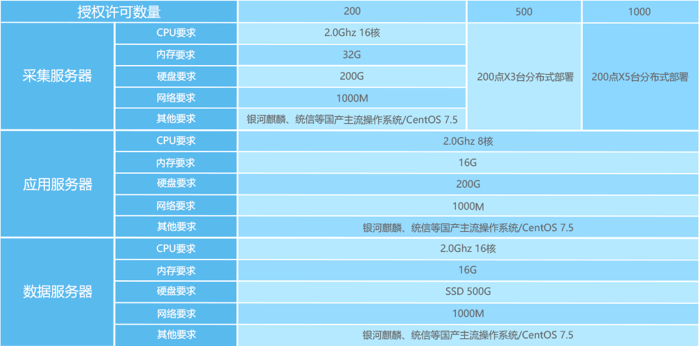| 其他要求 | 銀河麒麟、統(tǒng)信等國(guó)產(chǎn)主流操作系統(tǒng)/CentOS 7.5 | |||